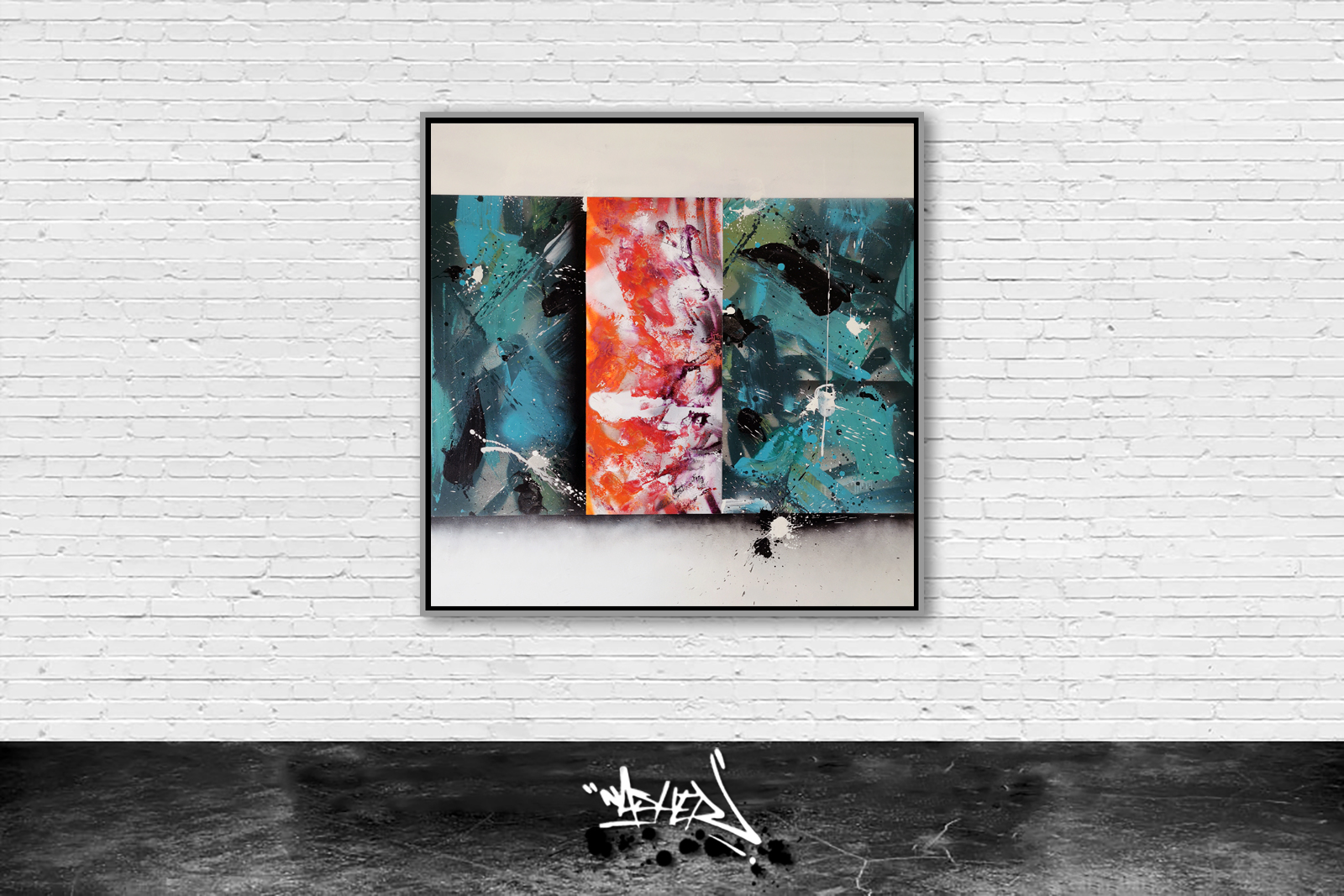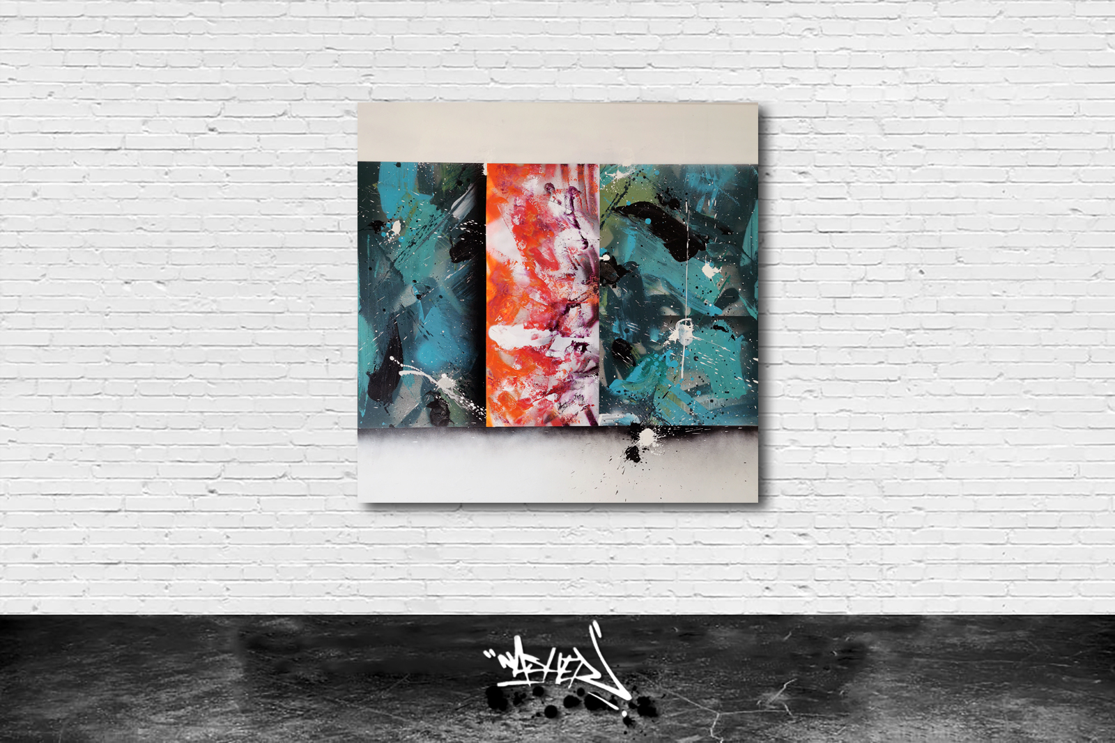 SUPPORT: Toile tendu sur chassis de 100 x 100 x 3,5 cm.